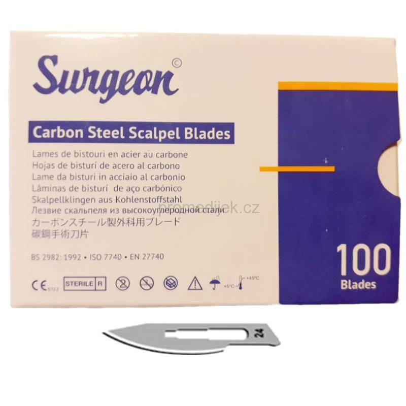 - Čepelky skalpelové č.24 Carbon Surgeon 100 ks