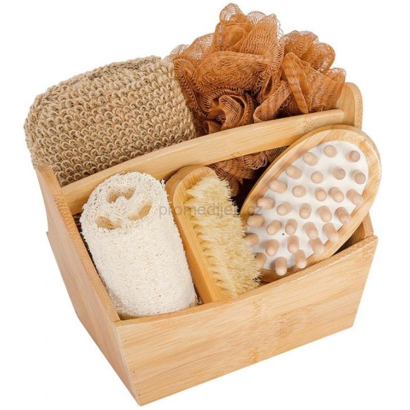 Exklusivní dárková sada pomůcek pro péči o tělo v bambusovém košíku s rukojetí německé firmy Croll & Denecke.