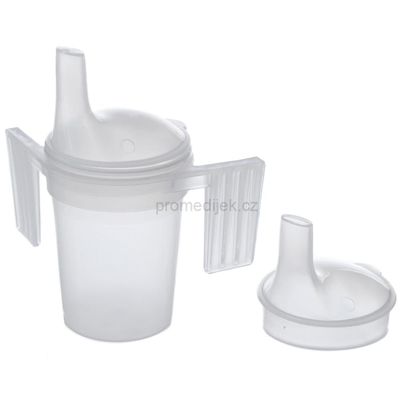Hrníček zabraňuje rozlití tekutin a umožňují podávat nápoje nebo kašovitou stravu osobám v ležící poloze.