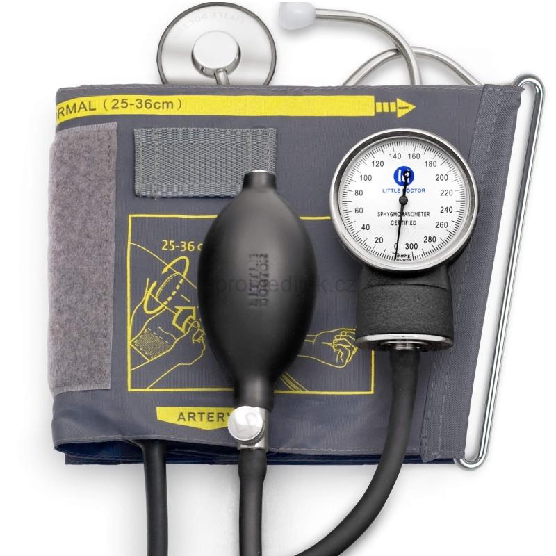 Dvouhadičkový tlakoměr aneroidní Little Doctor LD-71 na měření krevního tlaku na paži.