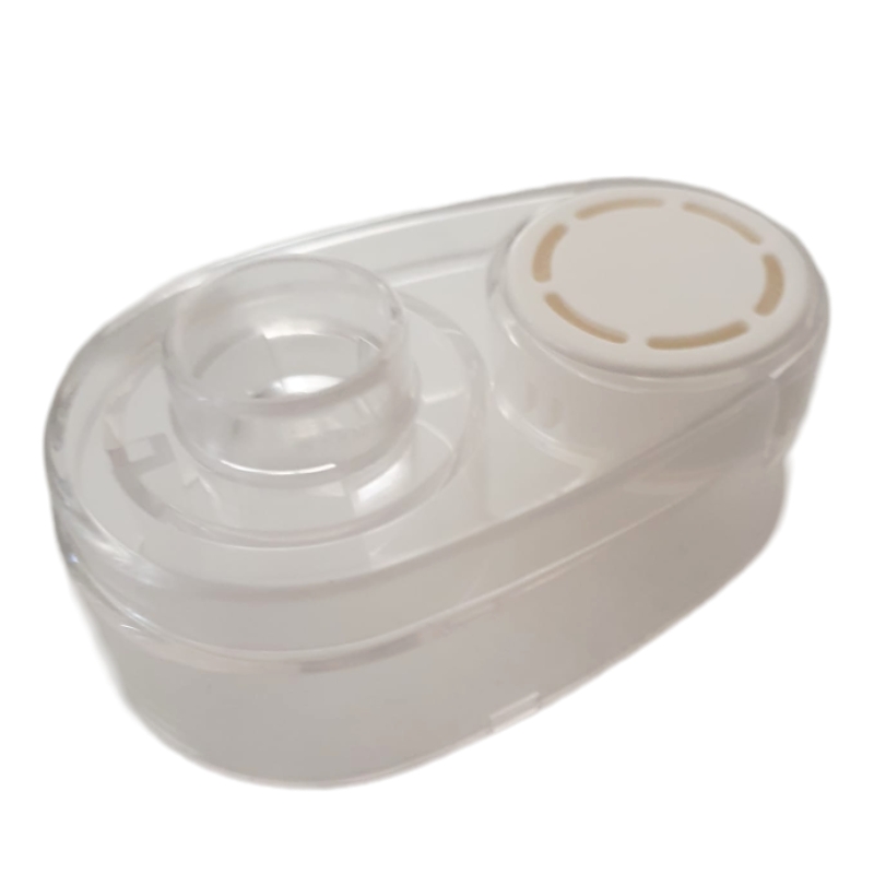 Průhledný ochranný plastový kryt a náhradní vzduchový filtr pro ultrazvukový inhalátor Respira.